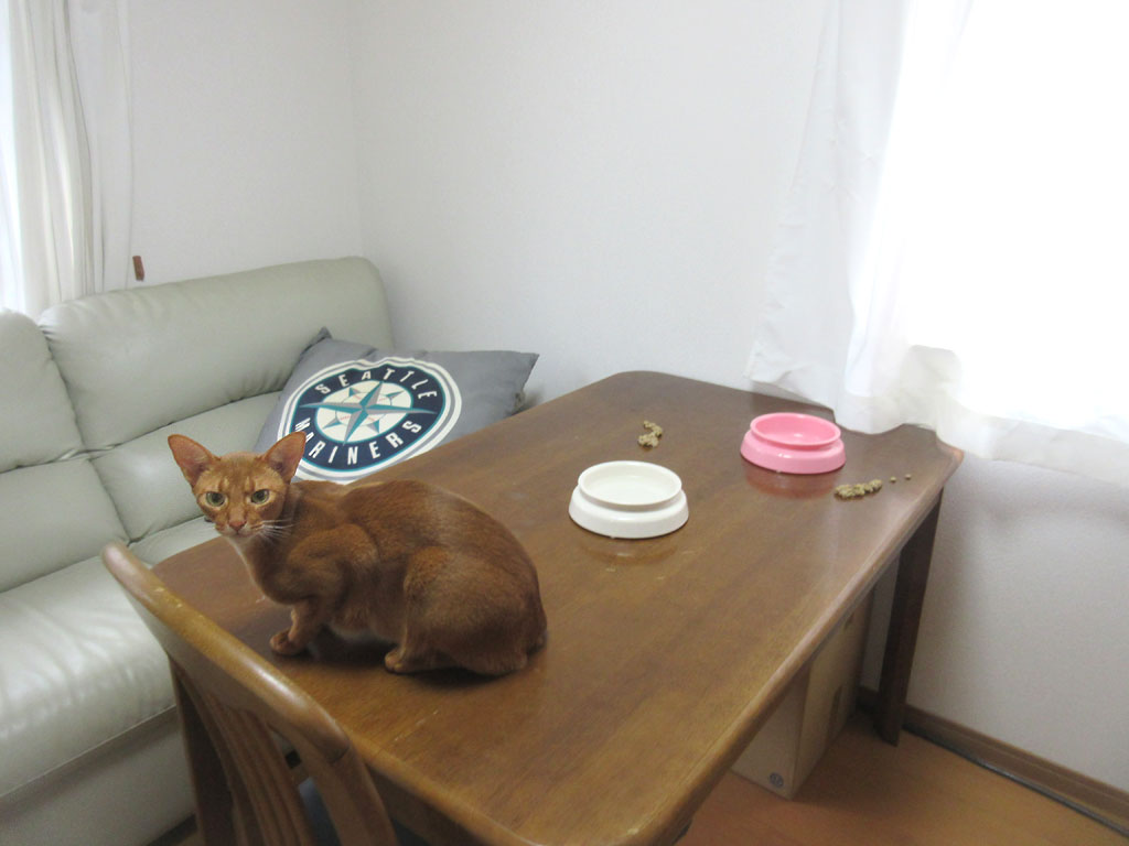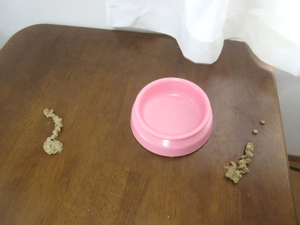 それにしてもアビのすけ君、今回は一層、私に気を使ってくれたのかい…、掃除のしやすいテーブルの上で吐いてくれて…、シャレにもならない冗談だ…。