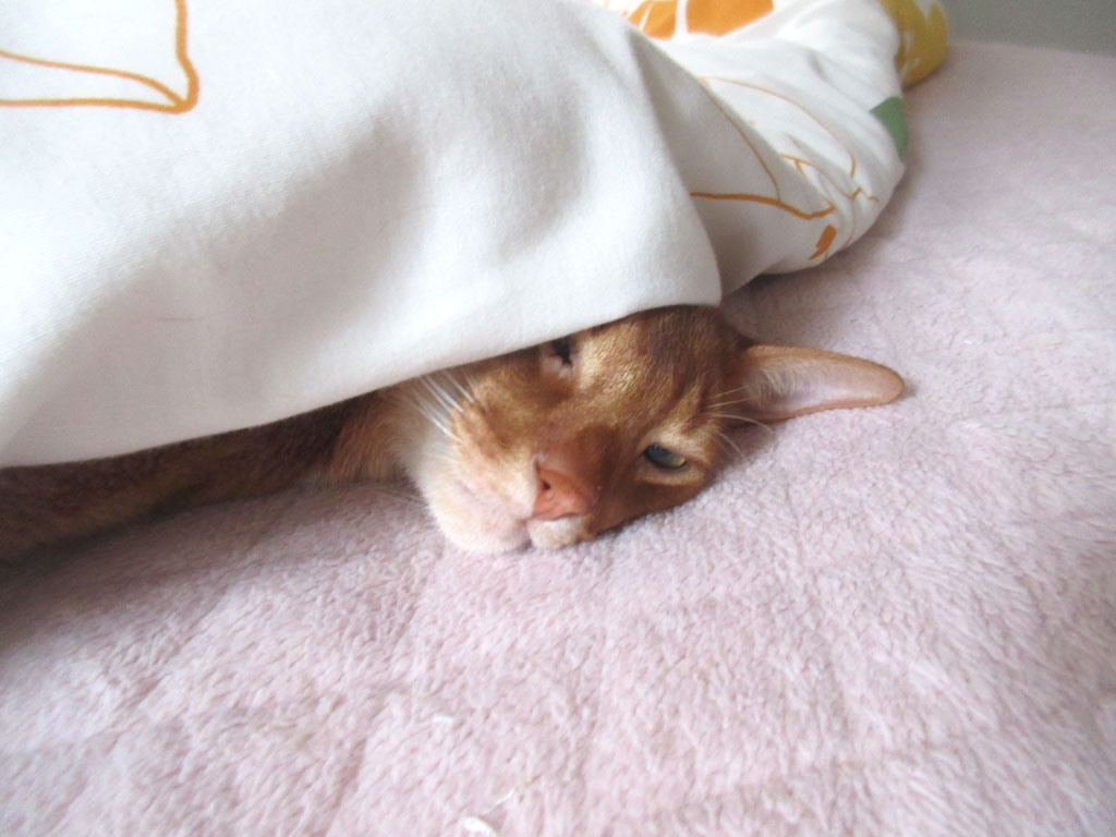 アビのすけ、とっても眠そうだったので、この時はアビのすけに茶々は入れず、私、また、布団をしっかりと掛けてあげて、アビのすけは2度寝で、また、夢を見に行ったのでした。(笑)
