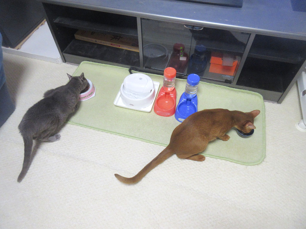 最近はロシ子も食欲が復活していて、ロシ子も向こうでしっかりとご飯を食べてくれていますが、私にとってこの風景は、本当にホッとする良い風景…、猫たちが元気よくご飯を食べてくれると、私の心も穏やかになります。