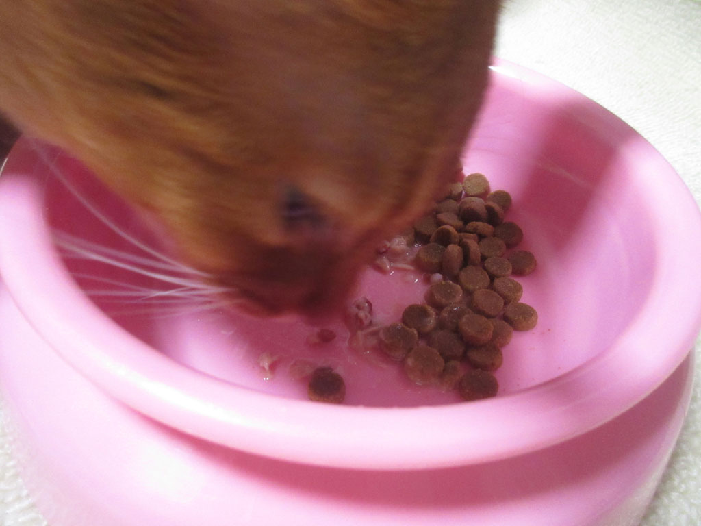 アビのすけの晩ご飯の2回目ご飯は、カリカリ20gと缶詰20gの合計40gなのですが、缶詰の20gなんてあっという間で、缶詰を食べ終わった後は、すかさずカリカリを…。