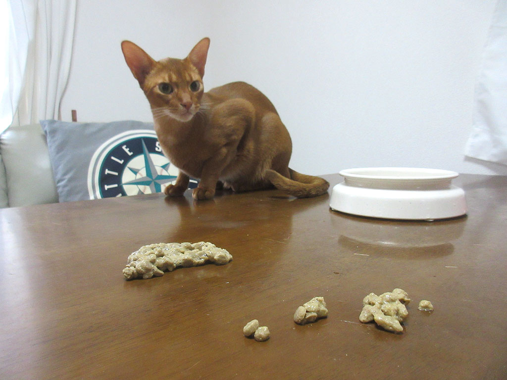 今回はアビのすけ、朝ご飯の2回目ご飯の途中に吐いてしまいました。