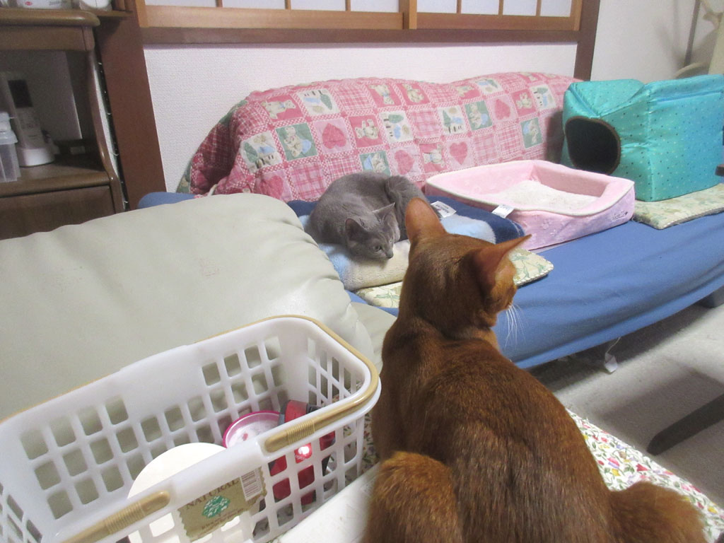 ロシ子とアビのすけがチュー…、私の夢…、幻のチュー…。 コメントを残す これは、昨日の晩の11時は回っていたと思いますが、我が家のロシ子ちゃんとアビのすけ君…、ロシ子はソファーベットの上の猫ベットで休憩していて、アビのすけは私の隣に…。 この光景を何気なく見ていて、私、ふと、思ったのです…、日頃、2にゃんが一緒に寝てくれる事もないし、じゃれ合ってくれる事もないし、そんな我が家の2にゃんを、バーチャルでチューさせてやろうと…。 続きを読む →