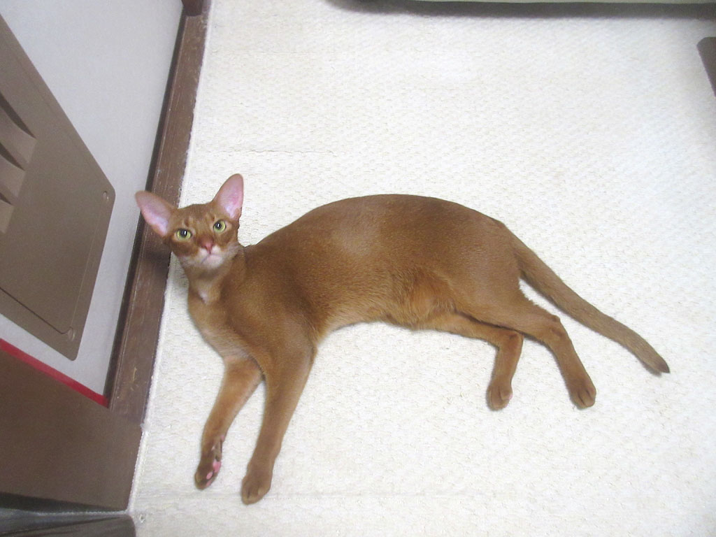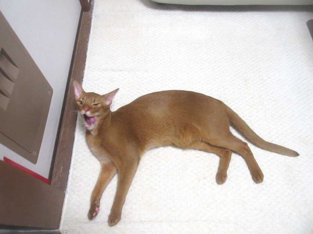 それにしてもアビのすけ君、フォーリンタイプのアビシニアンらしく、本当にシュッとしていて、アビシニアンで5kgもあったら、超・巨大なビッグ猫だし、体重だけだと、ちょっと太り気味かとも思えるのですが、でも、とてもとても、全く太っている様には見えず、超・男前なアビのすけ君。