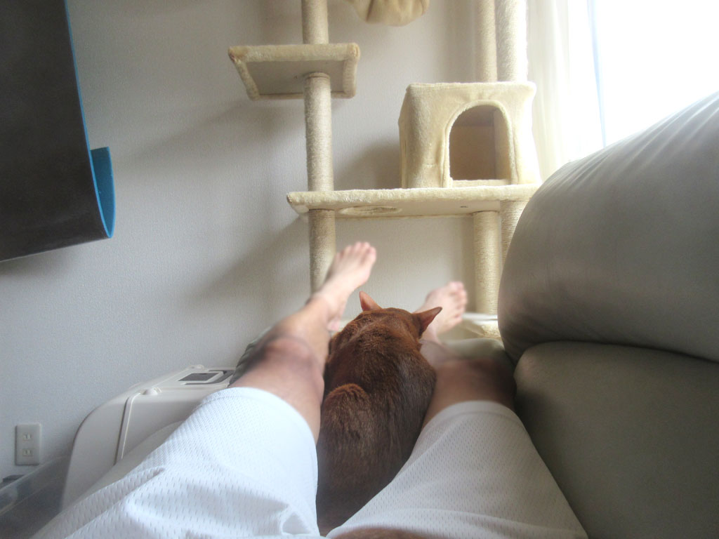それで、散々、私にスリスリをした後、わざわざ、私の足の間にすっぽりと収まって、それで、気持ち良さそうに寝てくれるのです。(笑)