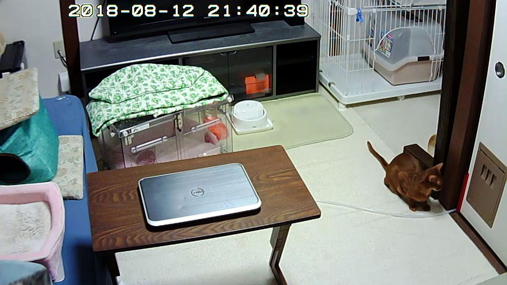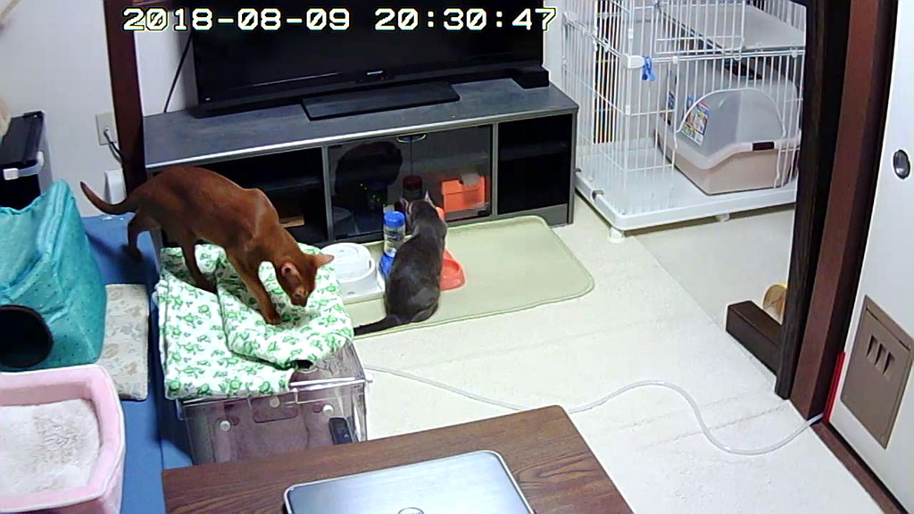 これは、ロシ子の酸素室が来て2日目の8/9(木)の晩の事でしたが、その酸素室に悪戯をしていたアビのすけ君…、新しい物には、ビビりながらも目がないアビのすけ君。