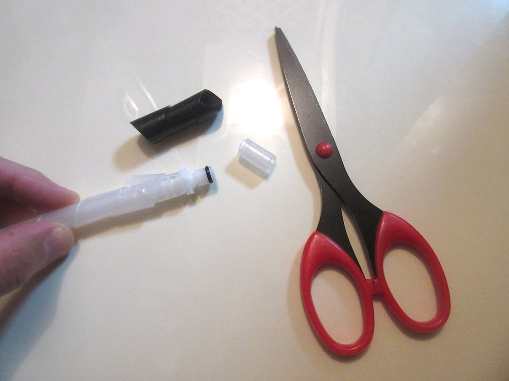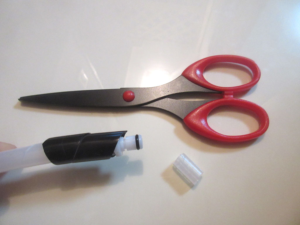 3mのホースのど真ん中を噛まれて穴を開けられてしまってたら、このホース、レンタル品なので、弁償ものだと思いますが、まぁ、2cm位の事なので、その部分をハサミでカットしてジョイントを差し込み、修復が完了…、テルコムさん、お許しを…。