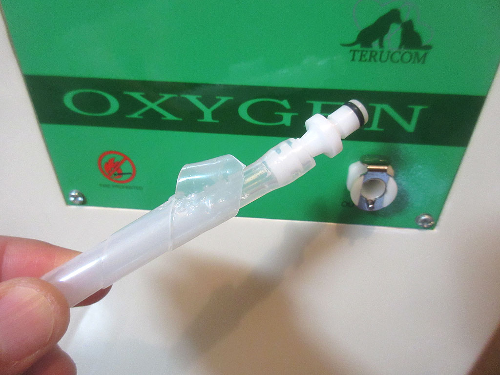 テルコムさんに酸素室をレンタルしに行き、使い方の説明を受けてる時に、このホース、絶対に我が家の猫たちは噛み噛みすると思ったので、何か対策を講じて頂けないのか聞いてみたのですが、「100金でコードカバーが売ってるんで、それを巻いて下さい。」という様な事を言われ…。