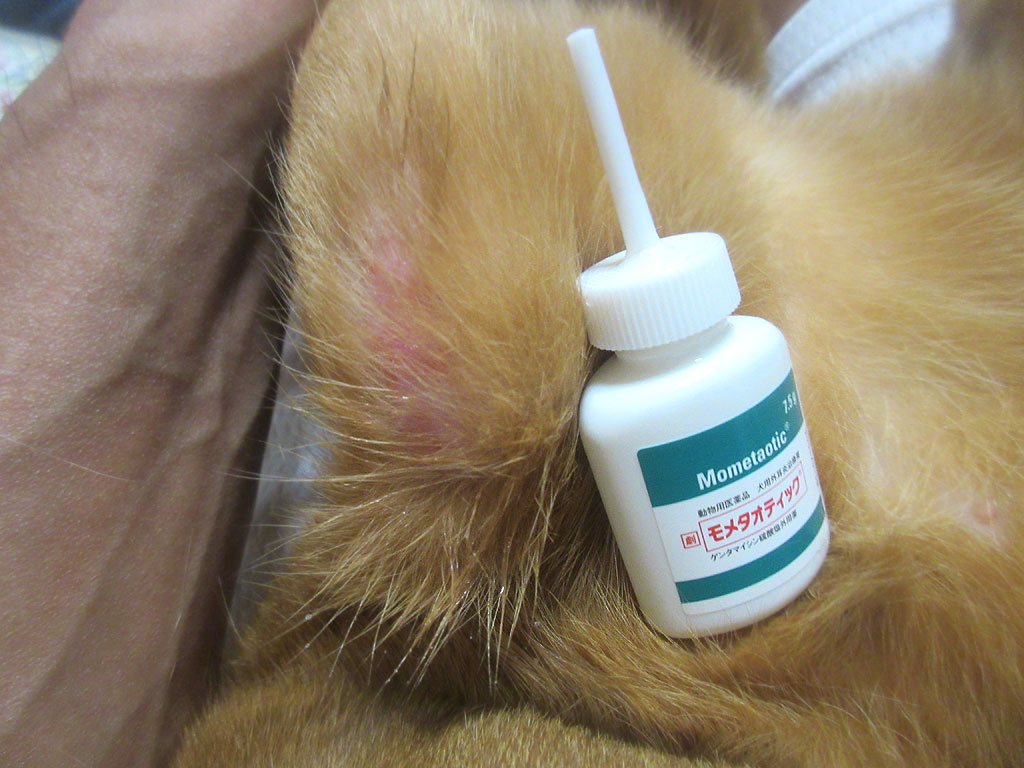 普段なら、あるいは、少々の皮膚炎なら、アビのすけの事だからって放ったらかしにしてしまうのですが、この時は、これは酷いって、即、アビのすけを2階に連れて行って、モメタオティックを塗りました。