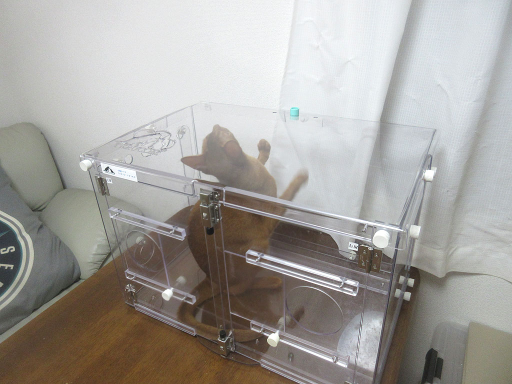 そこで私、ちょっとアビのすけの事をいじめてやろうと、酸素キャリーの扉を閉めて、アビのすけの事を閉じ込めてやった。