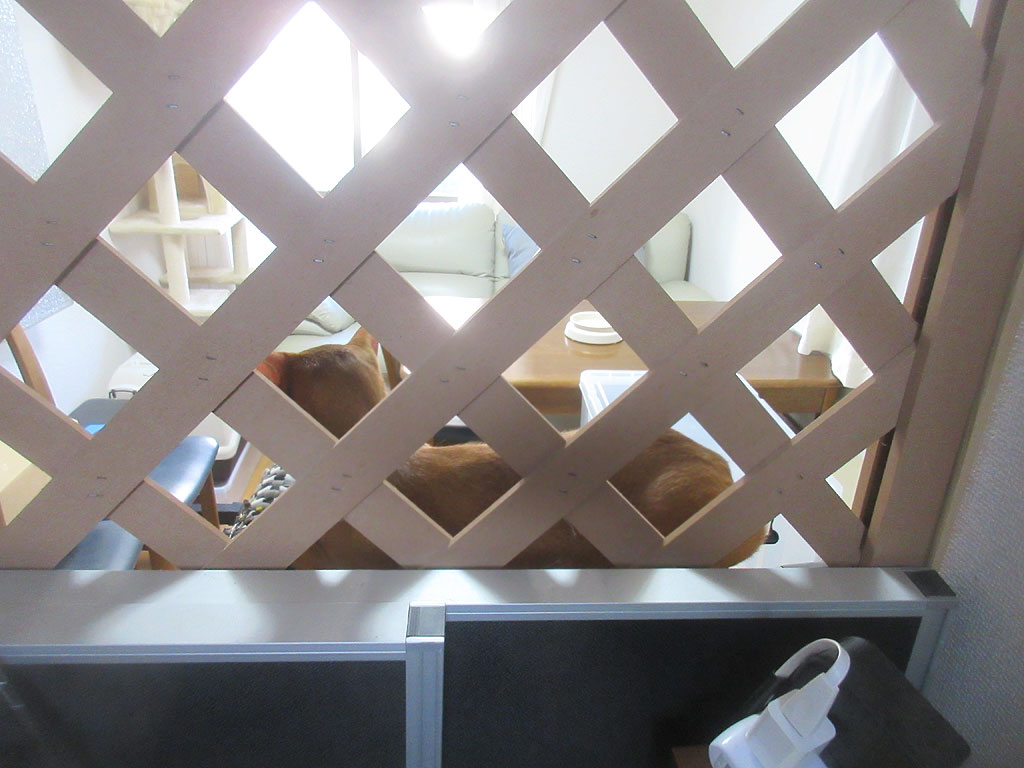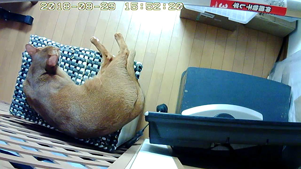 そしていきなりですが、時間は午後3時半に飛びまして、今度は、ここで寛いでいたアビのすけ君…、実は、この場所、仕事部屋でデスクに向かって座っている私の目の前で…。