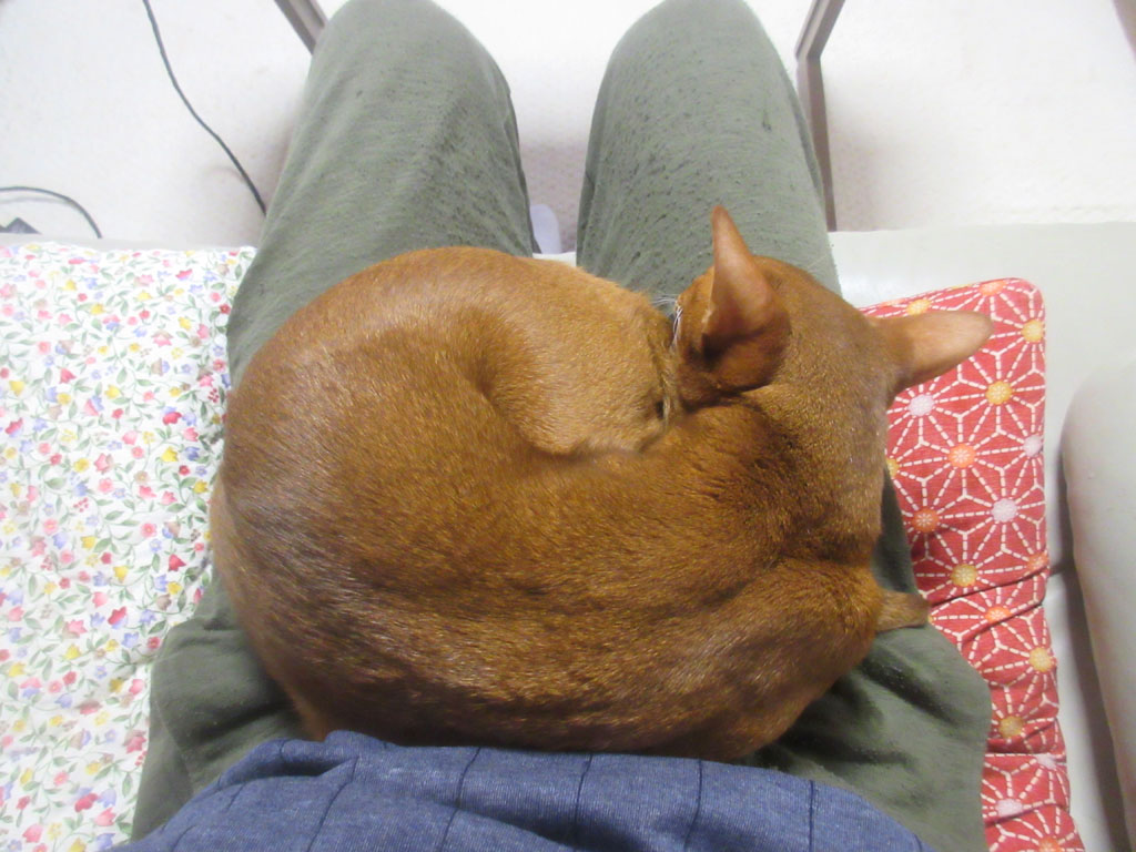 この時間、早く寝なきゃと焦りながらパソコンを触っていたら、アビのすけが私の膝の上に乗って来た…、えぇ~、この時間からぁ~…。(汗)