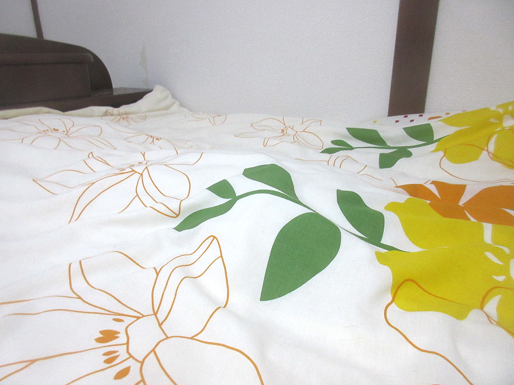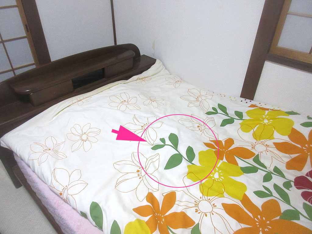 そんなこんなで、今日の朝が訪れて、これは今朝の4時45分…、4時半に起床して、2階の猫たちの水の容器を1階に下ろし、洗って新しい水を補充して2階に持って上がったのですが、布団を見るともっこり…。