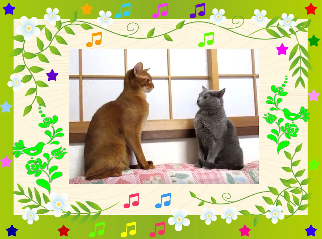 この写真、多分、今からロシ子とアビのすけが猫パンチの応酬を始める時の写真だと思いますが、何なと言いながら、大きな喧嘩もなく、一緒に平和に生活をしてくれている2にゃんです。(笑)