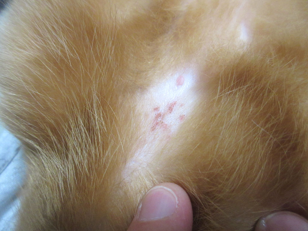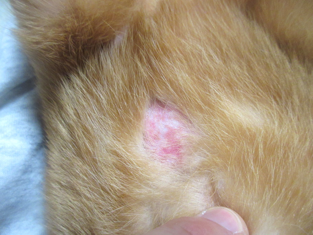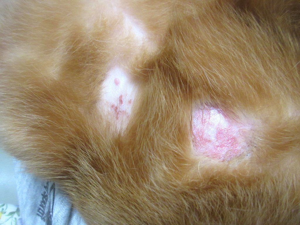 そして、モメタオティック後のアビのすけの皮膚炎かもの患部…、この右側の方は、以前、皮膚炎だった場所に間違いないと思うのですが、アビのすけが舐め舐めするから、皮膚炎が復活してしまったのかな…、困ったものです。(涙)