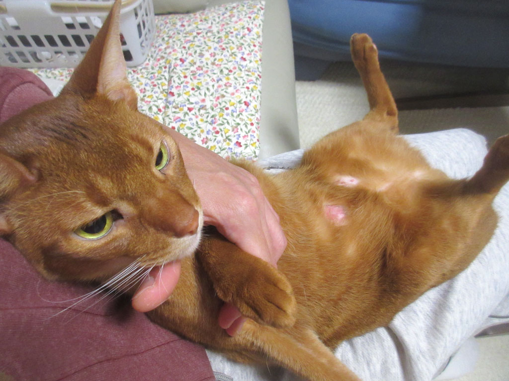 そして、モメタオティックを塗った後のアビシニアンのアビのすけ君。