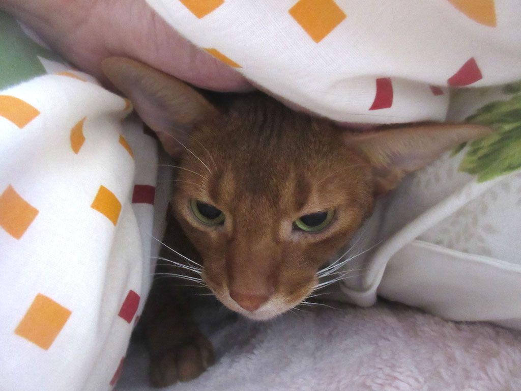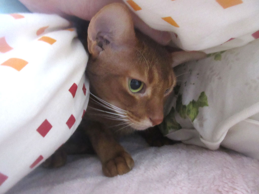 その後、またベットに戻って、自ら布団の中に潜り込み、気楽に2度寝をしているアビのすけが羨ましい…。