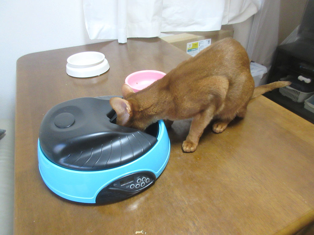 久しぶりに自動給餌器でのお昼ご飯を再開した時は、アビのすけ、私の「アビのすけぇ~、ご飯だぞぉ~。」の声にも、ウロウロとしていたのですが、今はもう、私の声が流れ始めたら、2階からダッシュで駆け下りて来ます。(笑)