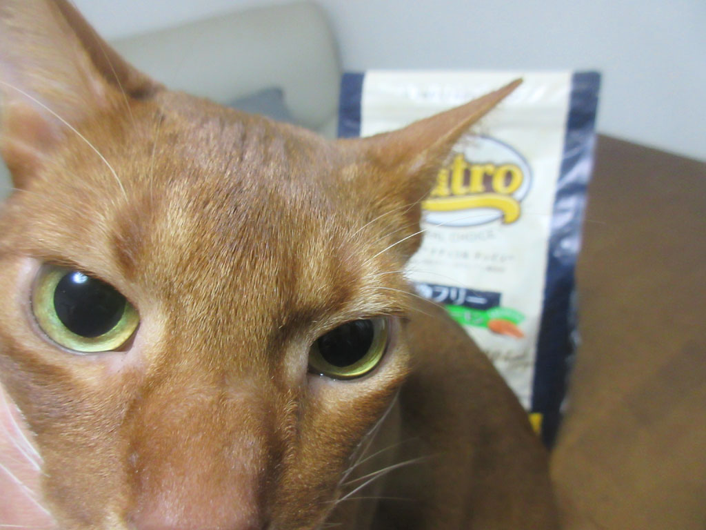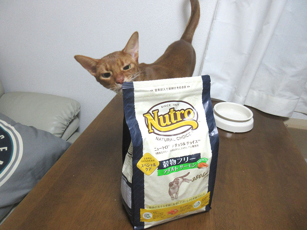 どんなアドバイスかと言うと、ブリーダーさんの所のアビのすけとは血が繋がっていないアビシニアン君も皮膚炎が酷かったらしく、ロイカナの療法食を食べさせても一向に良くならず、たまたま、ニュートロのグレインフリーを食べさせた所、それまで酷かった皮膚炎がぴたりと止まって、綺麗な皮膚を保っているとの事で。