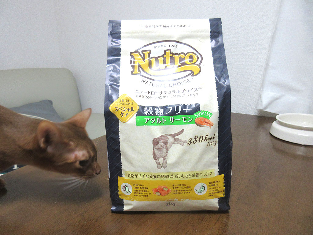 なので、ジャーン…、今まで2回のニュートロは、完全にロシ子の為を思って買った物でしたが、今回は、アビのすけの為に買ったグレインフリーのニュートロです。
