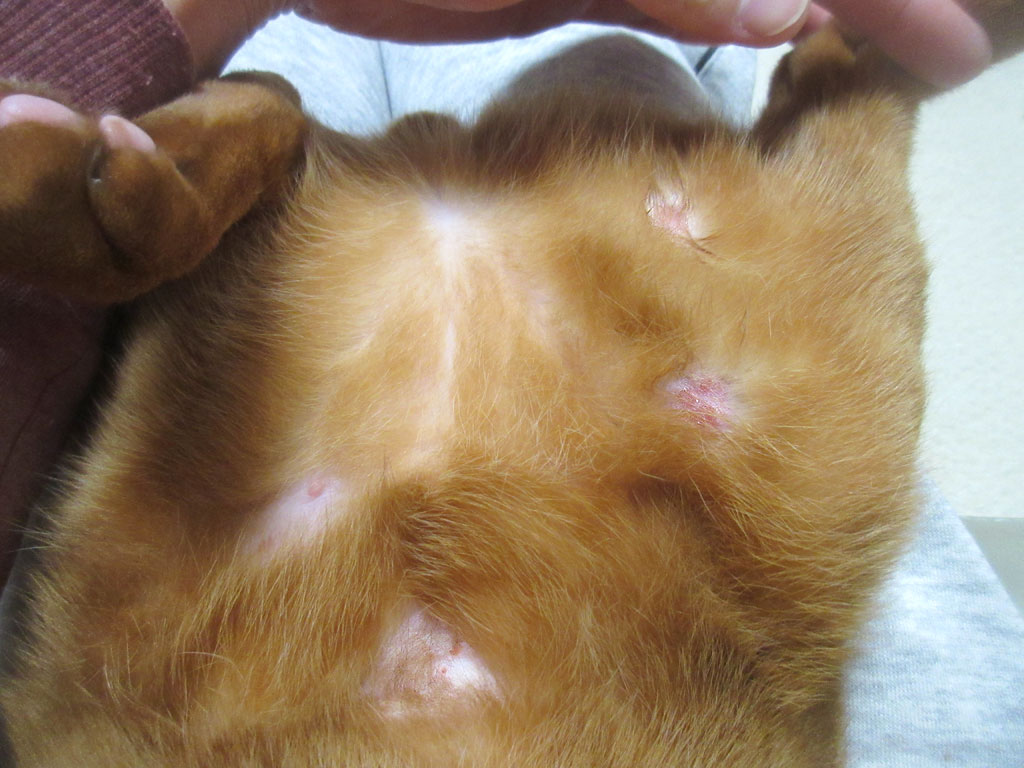そして、この日のアビのすけの皮膚炎だらけの下半身…、腹部中央の皮膚炎29号と、写真には写っていませんが、左足太もも内側の皮膚炎30号に関しては、かなり快方に向かっています。