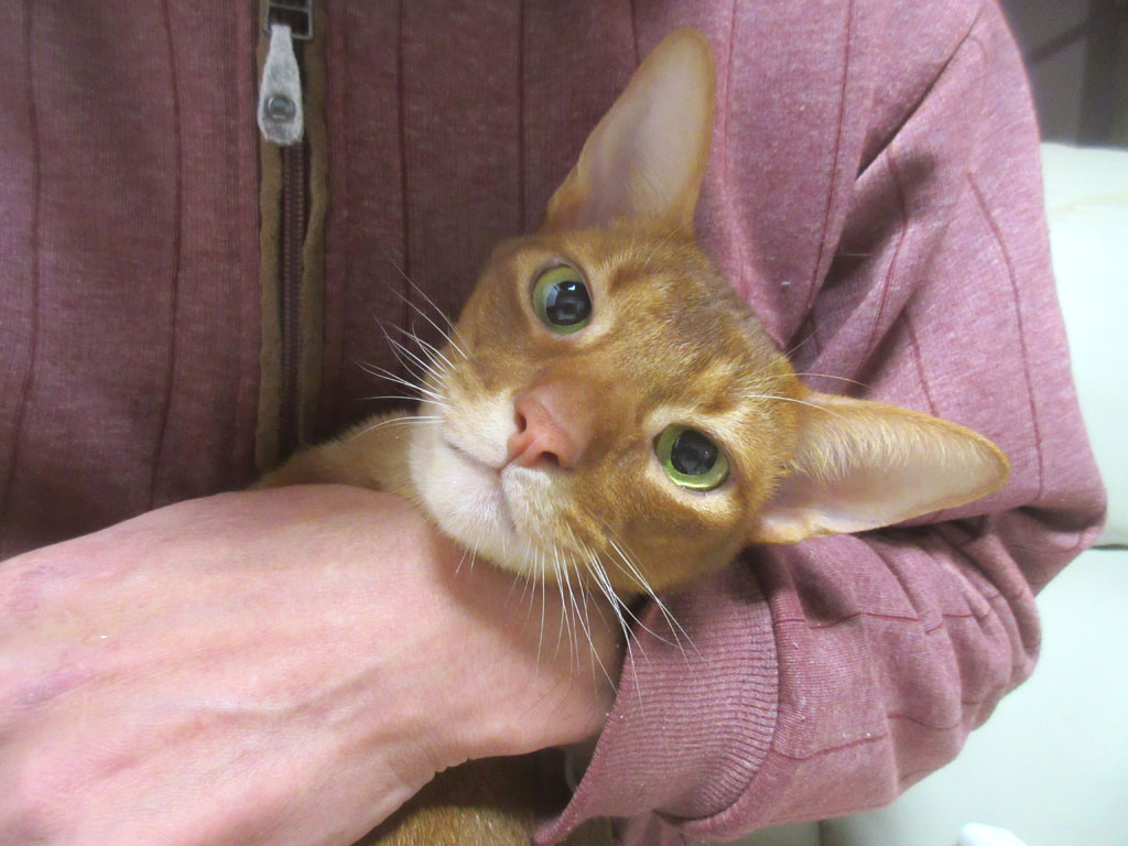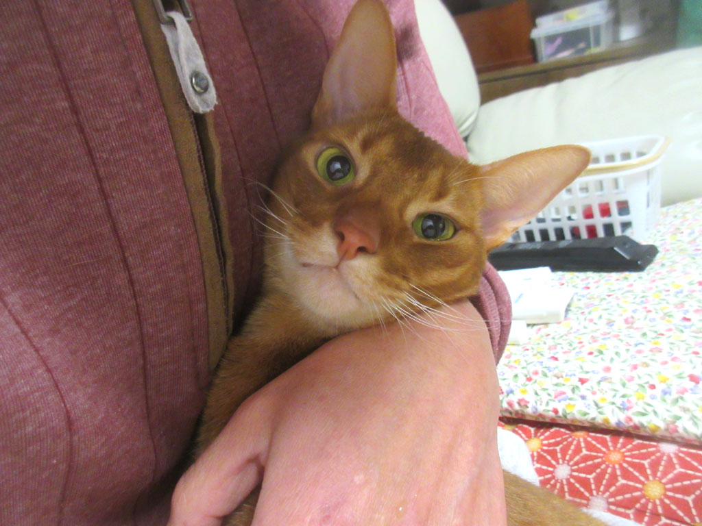 性格って変わらないもので、今でもロシ子にしか威張れない、気の弱~い内弁慶なアビシニアンのアビのすけ君ですが、この時の何百倍も、今のアビのすけの方がかわいいよ…、甘えん坊のアビのすけ君。(笑)