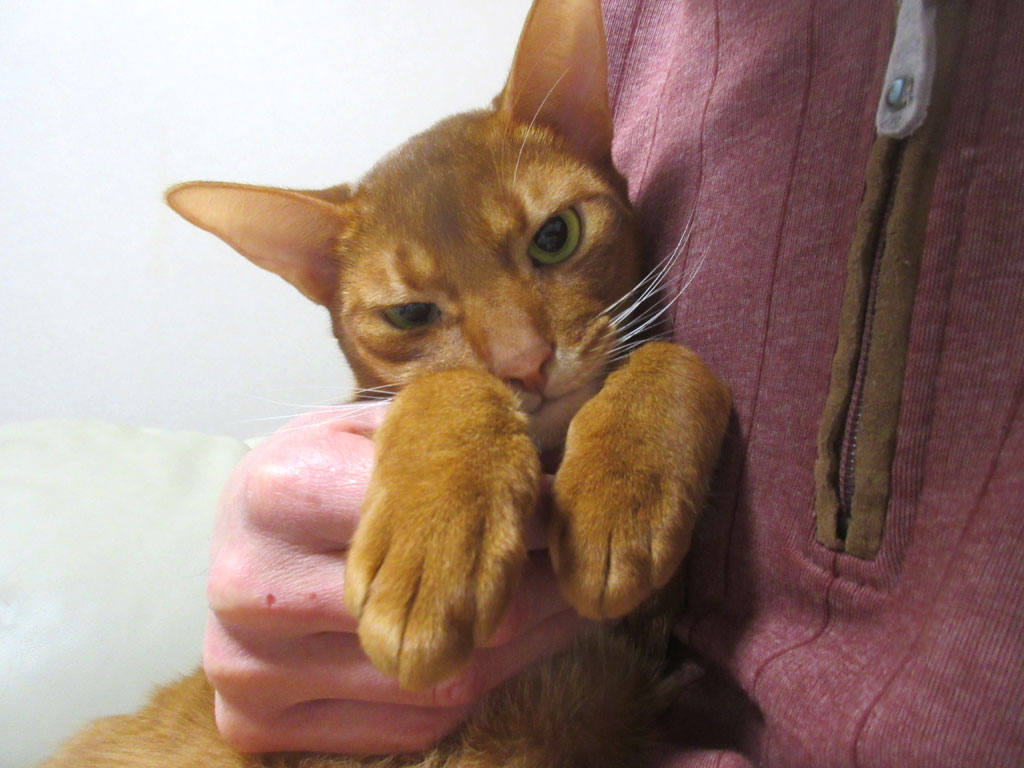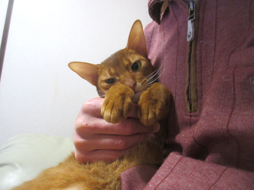 その日の晩のアビのすけ…、何をする為だったかは忘れましたが、取り敢えず、アビのすけを取っ捕まえたのですが、幽霊の手になっていたアビのすけ君。