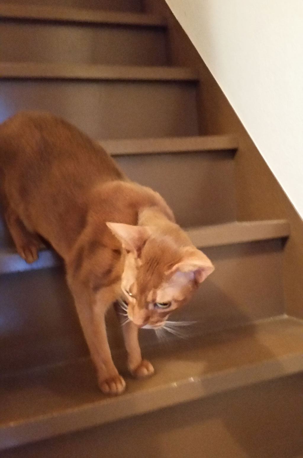元気いっぱいなアビのすけ。その後、元気いっぱいなアビのすけ君は1ヵ所に留まる訳もなく、1階の私の所までやって来てたのですが…。