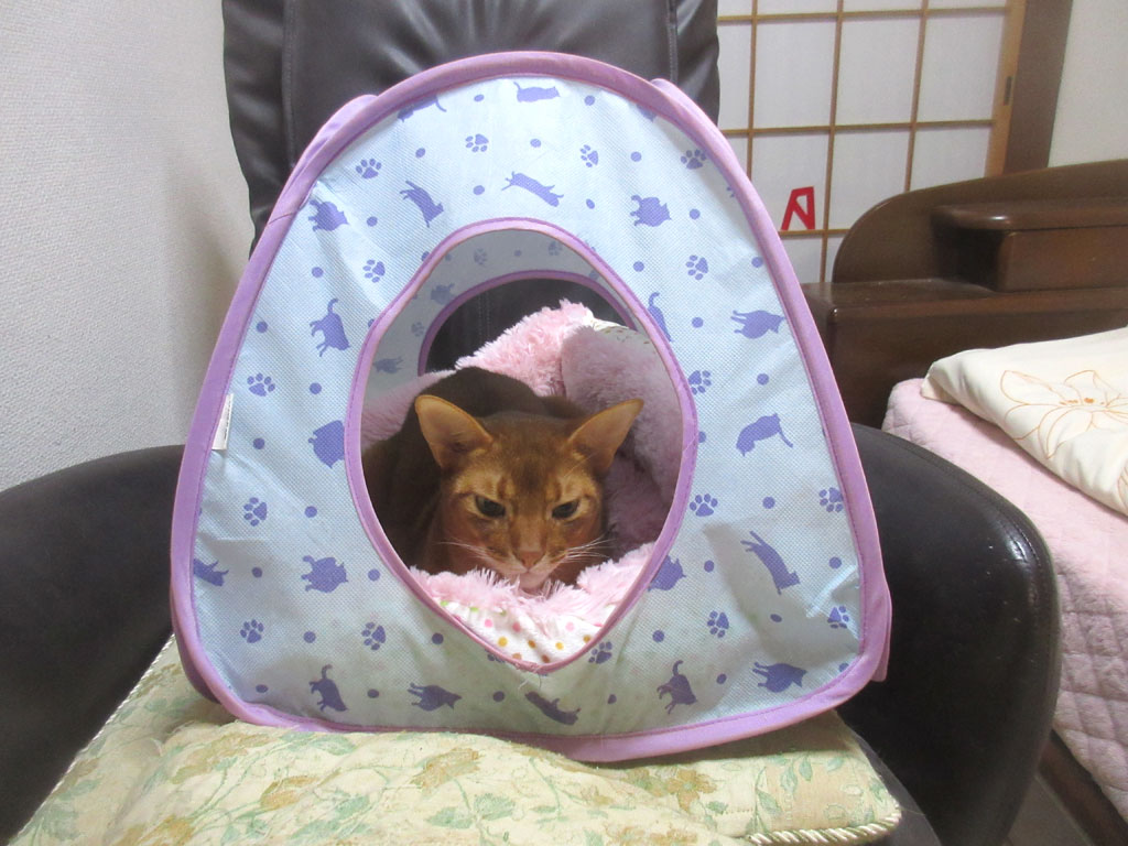 今日は、皮膚炎をチェックする前のアビのすけの様子をアップさせて頂きますが、1枚だけ別の写真…、これ、4日前の1/11(金)の晩11時前、そろそろ私、寝ようとベットに向かったら、アビのすけがこのロシ子の定位置で休んでて、この後、何の躊躇もなく、私はここからアビのすけを引きづり出し、ロシ子を寝場所にいざなってあげたのでした。