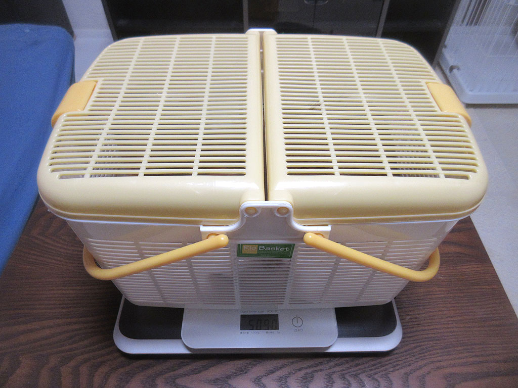 そしてこれは、おとといの1/16(水)のアビのすけの体重測定の様子。
