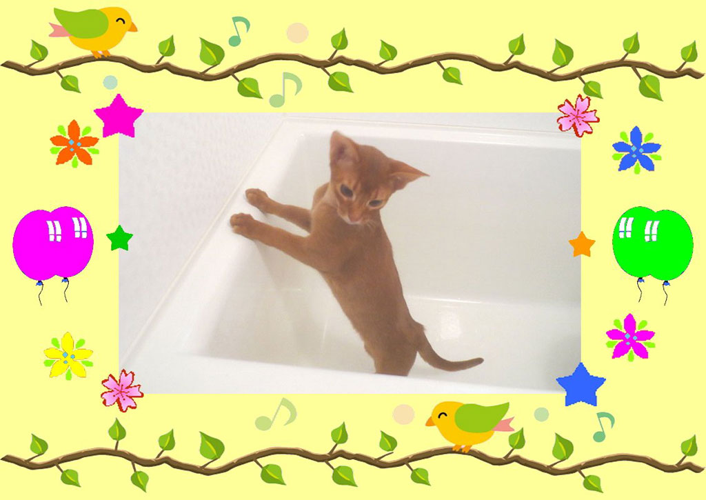 今ではでっかいアビシニアンの悪ガキ君になってしまったけど、この頃はまだ華奢で、超・かわいい。(笑)