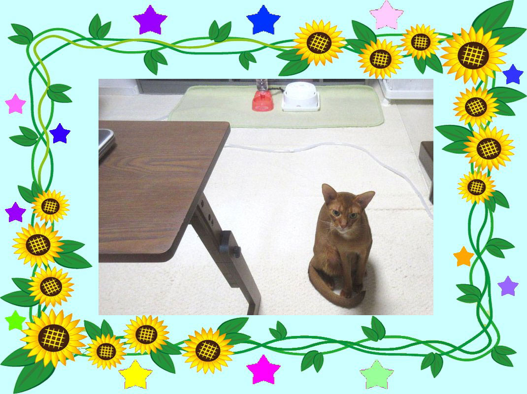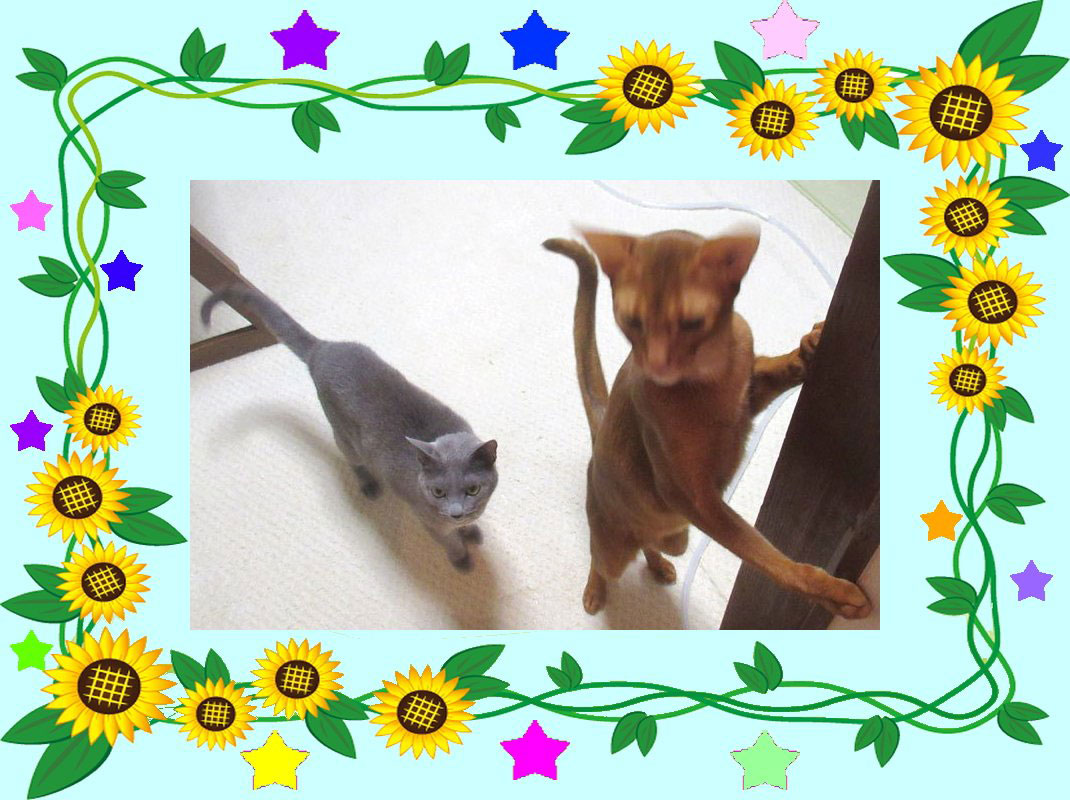 なのはなさんからの写真。そしてもう1枚…、これは、どんな場面だったか一目で分かる…、2階に猫たちの晩ご飯を持って上がり、部屋の戸を開けた瞬間のアビのすけだな…。