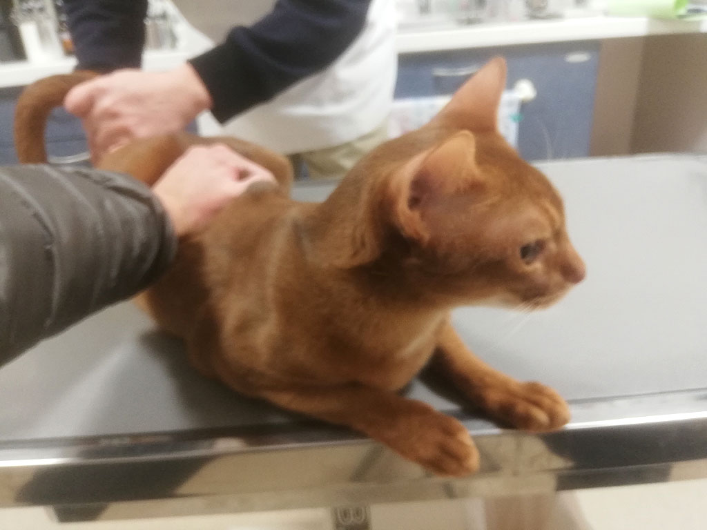 そして、診察室に入り、まずはアビのすけを押さえ付けながらの体温測定…、こちらの動物病院は助手の看護師さんがいないのが玉に瑕で、私が助手をしなければいけないので、撮った写真の3/4はボケてる写真だった…。