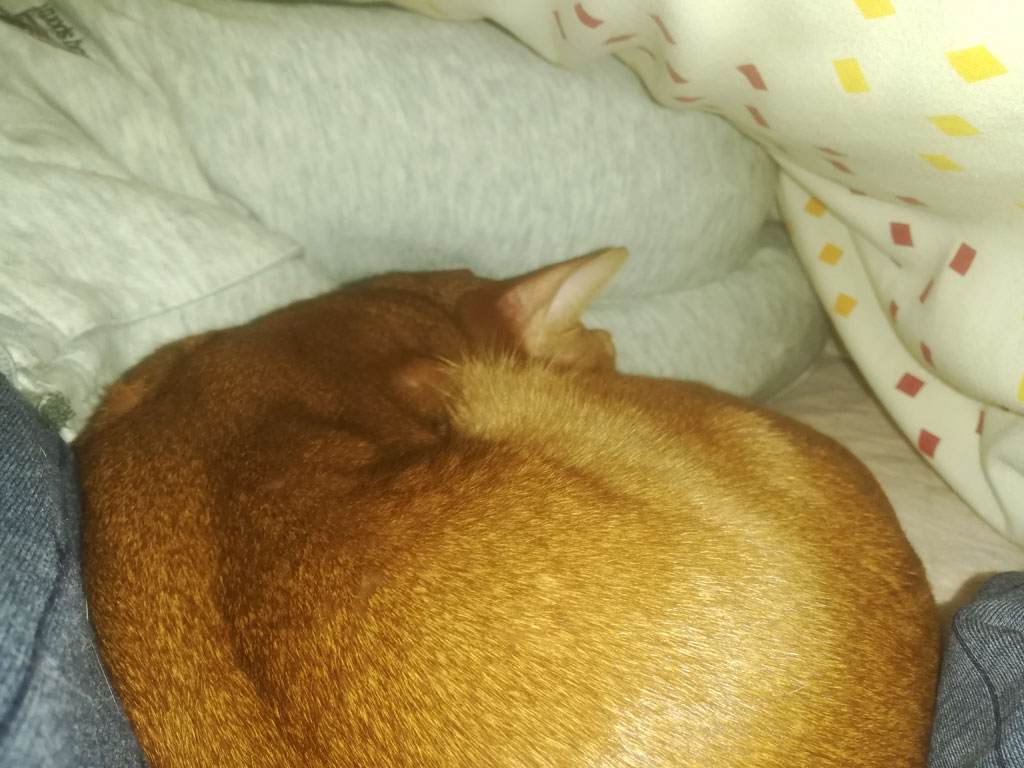 暫くすると、アビのすけも睡眠モードに入って、そして、30分後に私が布団から出た後も、アビのすけはこの後、2時間とか3時間とは布団の中でぬくぬくで寝続けるのです。