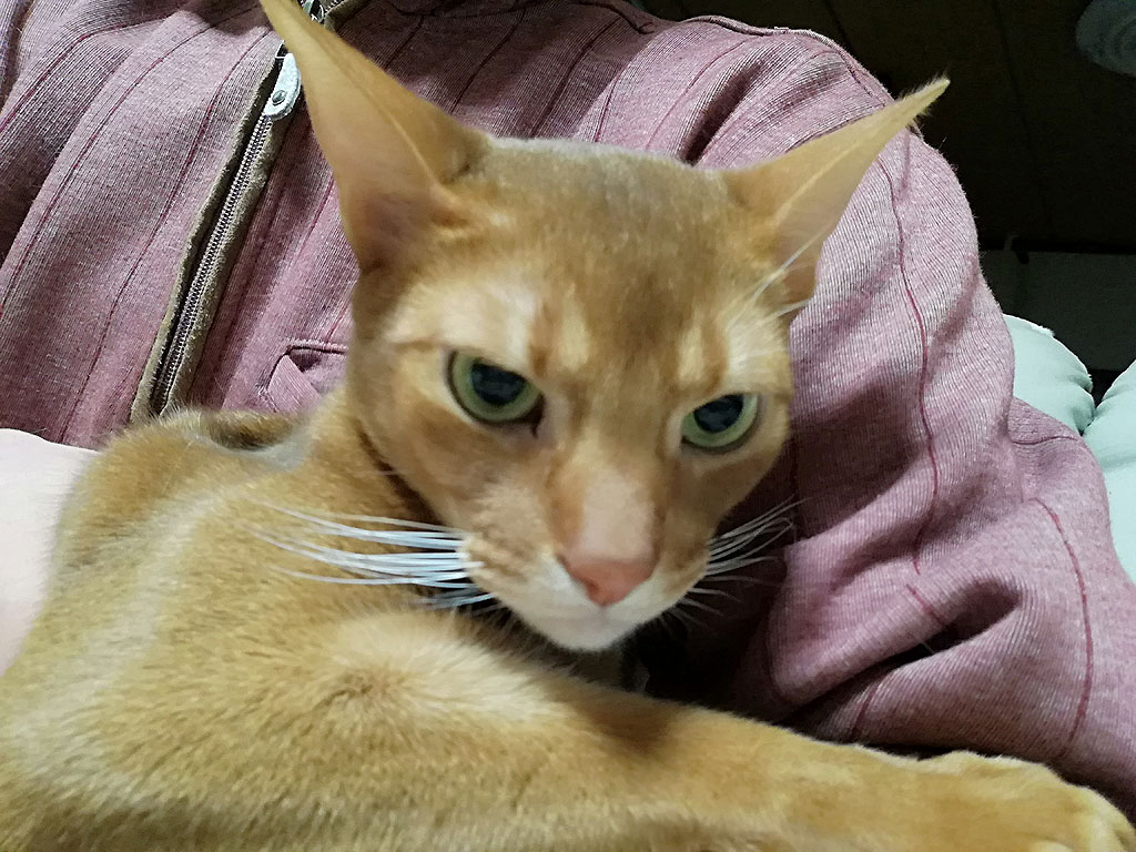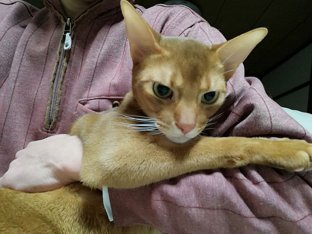 アビのすけ、人間年齢で33~34歳、でっかい子供…。(汗) コメントを残す これは、おとといの晩の事…、アビのすけのブログの写真がなかったので、意味もなくアビのすけを捕まえて写真を撮った。 それにしても、アビのすけはこう見るとデカい…、体重5kgオーバーのアビシニアンのアビのすけ君。 アビのすけは現在、猫年齢で4歳と4ヶ月。 人間年齢で言ったら、33~34歳…。 アビのすけがもしも人間なら、こんなに幼い33歳はいないよ…。 逆に言えば、少年の様な心を持っていて、だからこそアビのすけはかわいいのかも知れない…。 最近は、本当にアビのすけがかわいくて、アビのすけの行動を見ていると、本当に天真爛漫に、自由に、生きたい様に生きているアビのすけ君です。