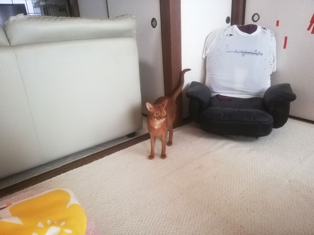 これは、昨日の未明の3時05分の事でしたが、この後、ロシ子が吐いてしまった事は、昨日のロシ子のブログにアップさせて頂きましたが、ロシ子を心配しての事なのか、あるいは野次馬根性的にやって来たのか、アビのすけがしんどそうなロシ子の近くをウロチョロして…。