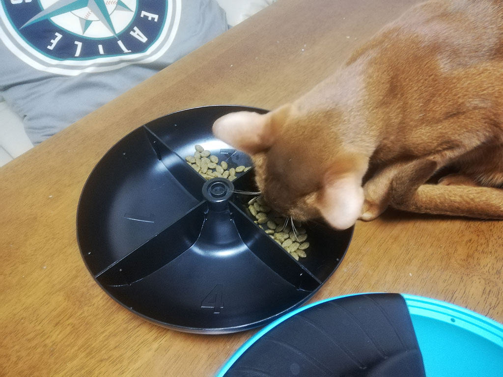 昨日の午後17時45分、アビのすけのお昼ご飯の自動給餌器をかたずけようと思ったら、自動給餌器が動いてなかった…、慌ててトレーを取り出し、アビのすけに。