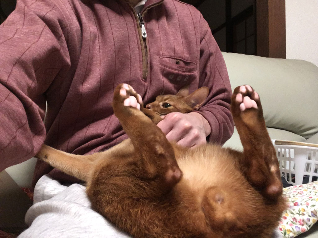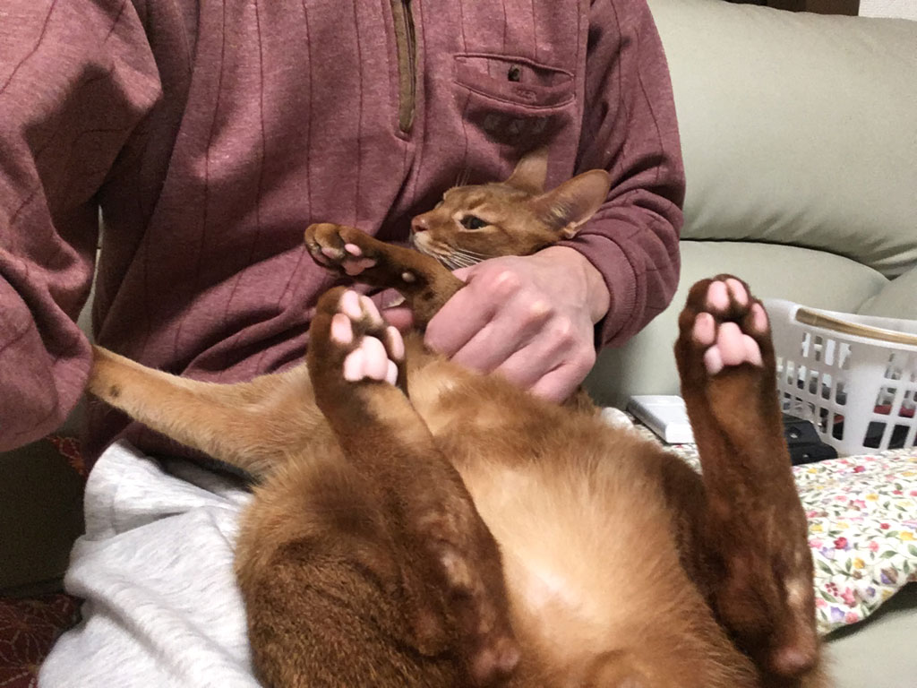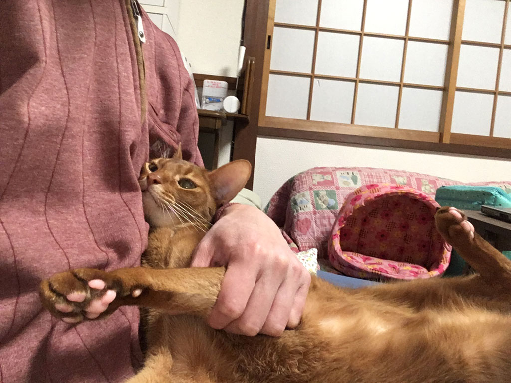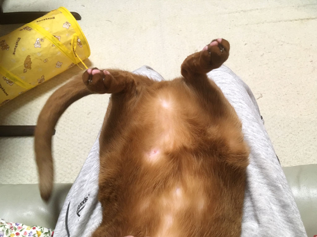 ‎iPhone-‎20190‎40‎7_‏‎1953-1これは、6日前の4/7(日)の晩8時前のアビのすけ君…、久しぶりにアビのすけの皮膚炎チェックをしたのでした。