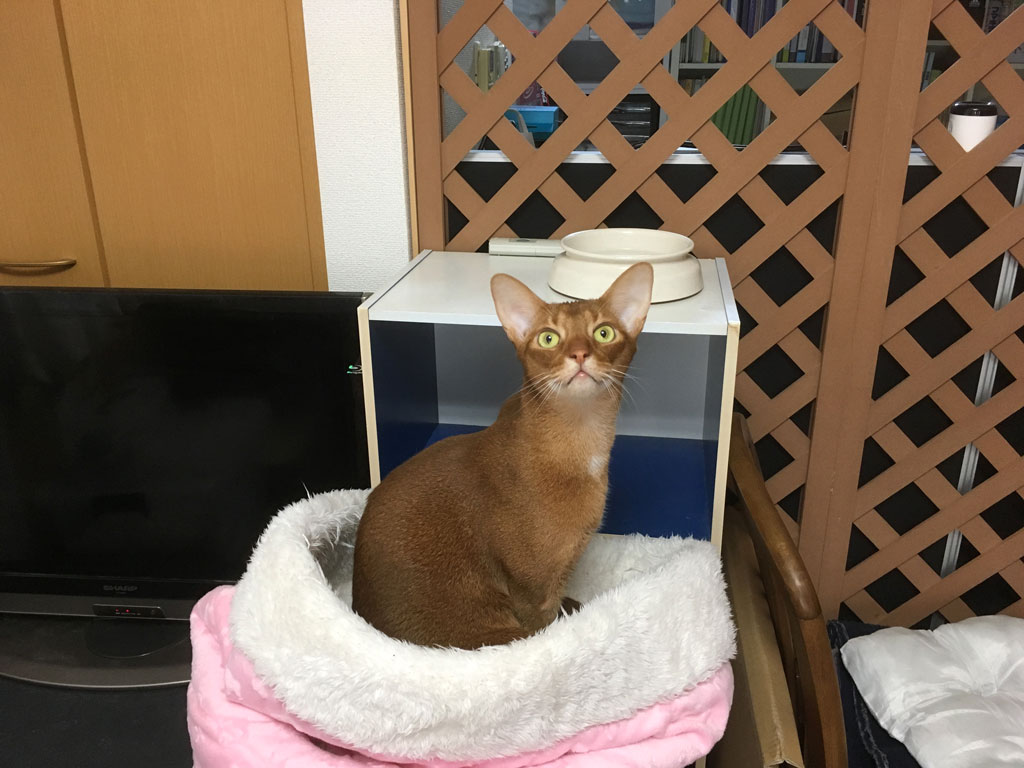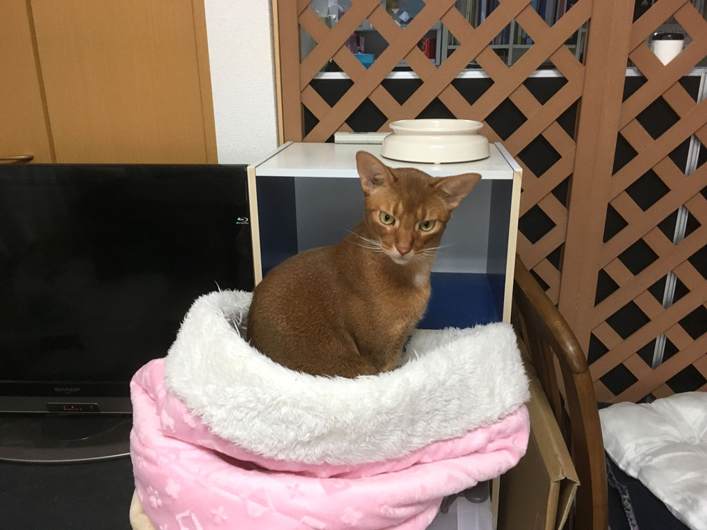 新たな寛ぎ場所のアビのすけ君…、静かにしといてよ。 コメントを残す 昨日のブログからの続きみたいになりますが、これは、おとといの4/16(火)のお昼前のアビのすけ君…、新たな寛ぎ場所にいました。 穏やかなアビのすけ君。 向こうでロシ子が酸素ハウスの中に静養してるんだから、アビのすけ君、静かにしておいてよ。