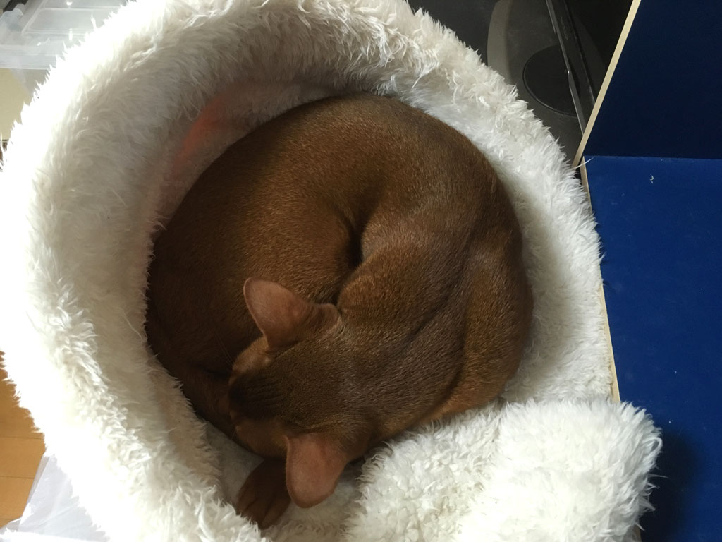 アビのすけのブログにまで手が回っていません…。(涙) コメントを残す アビのすけの写真も撮ってはいるのですが、それを整理するには至っておらず、毎日、ネタを小出しにしながらアビのすけのブログを更新しているという現状です…、アビのすけ、ごめん…。 という事で、これは、おととい、昨日のブログの続きの様な感じですが、新しい寛ぎ場所を発見して、ここで丸まって寝ていたアビのすけ君。 上手に寛げる場所を探し出すアビのすけ君。 最近も、アビのすけは超・元気で、超・私に甘えん坊さんのアビのすけ君です。