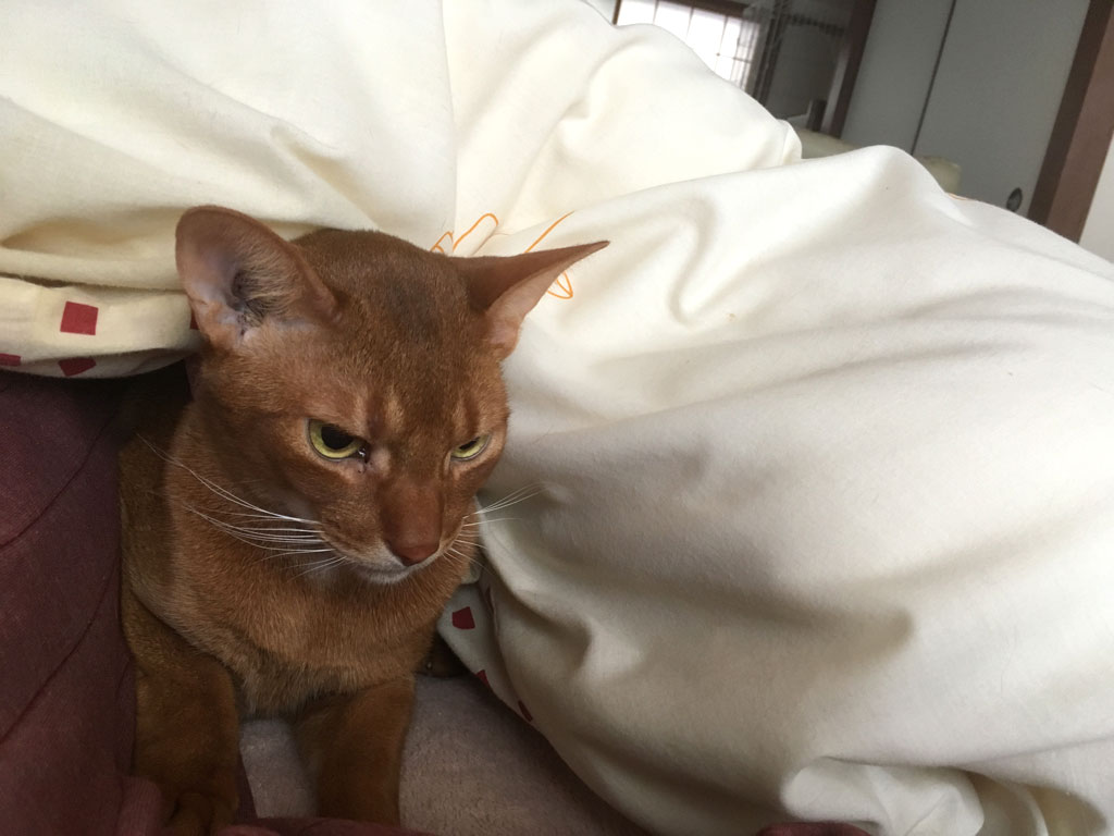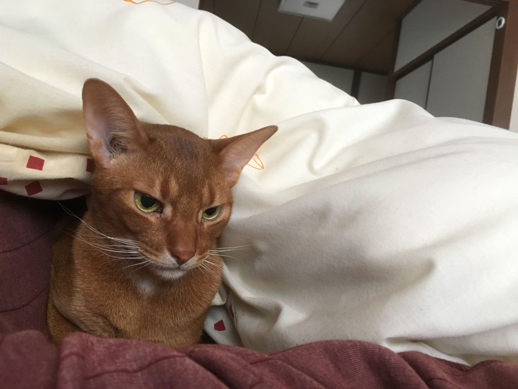 iPhone-20190417_1337-1これは、ちょうど1週間前の4/17(水)の昼過ぎのアビのすけ君…、私が仮眠を取ろうと2階に上がったら、アビのすけ君も布団の所に来てくれました。