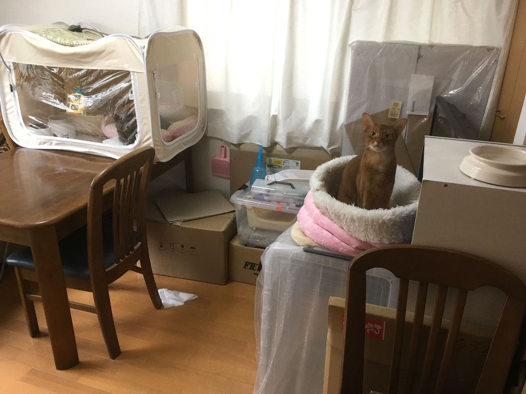 アビシニアンのアビのすけ君の爪切りと体重測定の様子。