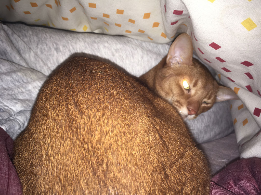もう、本当にアビのすけがかわいくて、この後、多分、布団から出て行ったアビのすけでしたが、それでも、掛け布団の上で私に寄り添って寝てくれていたアビのすけだったのです。(笑)