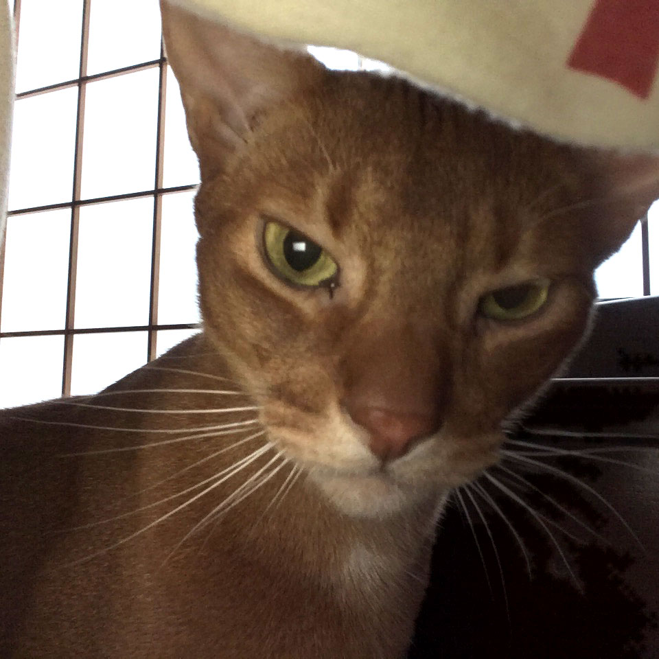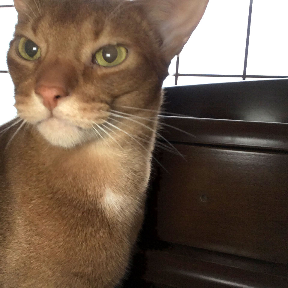 暖かくなったので、一緒に布団の中では寝てくれなくなりましたが、それでも、私が仕事部屋から出て2階に上がると、私に絡みたくてほぼ100%、私の所にやって来るアビのすけ君。