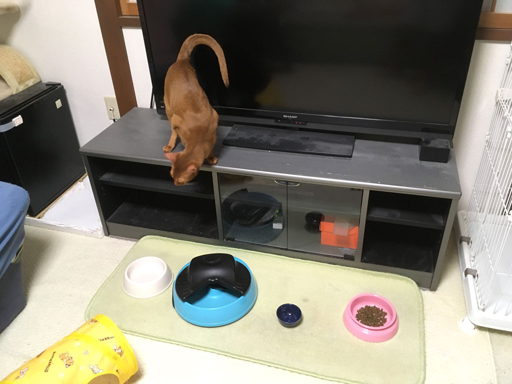 これは、3日前の5/17(金)の晩9時40分過ぎ…、アビのすけに晩ご飯を出してあげた所で、缶詰の方は出してから30秒位で完食してしまい、本当にアビのすけはご飯が大好きな男の子。