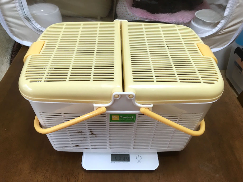 iPhone-20190605_0812-1そう言えば、アップするのが遅くなりましたが、これは先週の6/5(水)のアビのすけ君の体重測定の様子ですが。