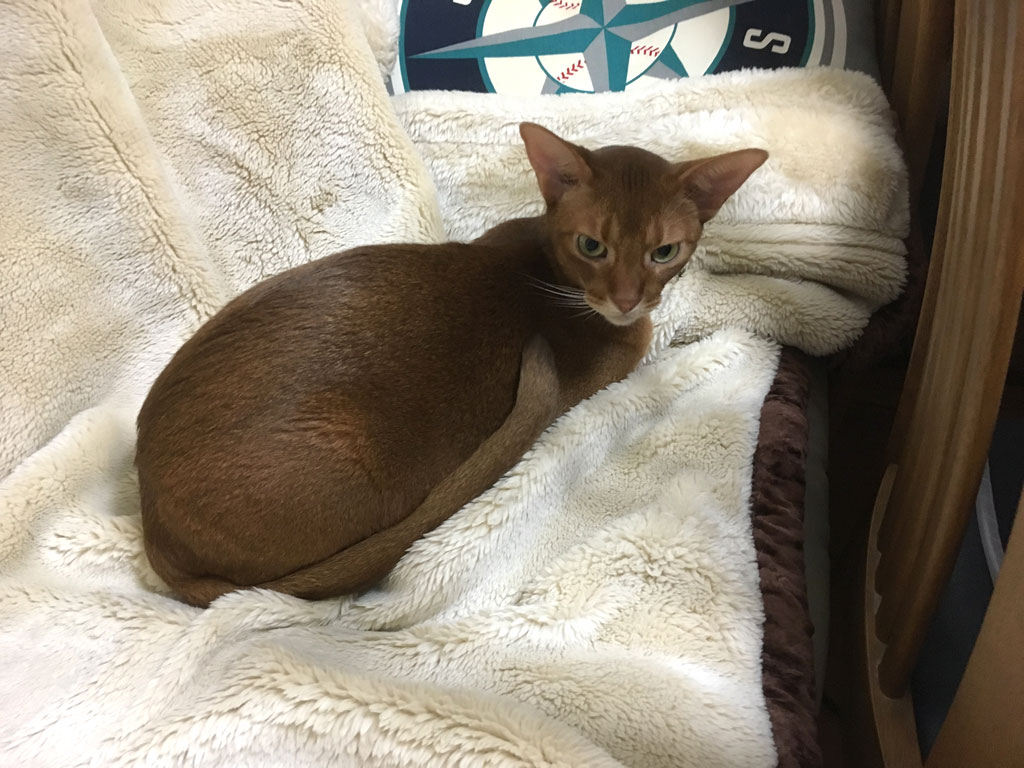 iPhone-20190716_0330-1話は変わりまして、これは昨日の未明の3時半、私が起きたての毛布の上にやって来たアビのすけ君。
