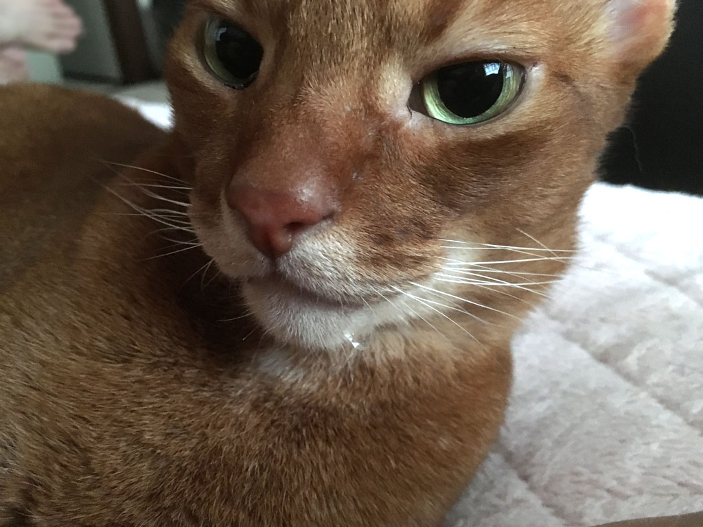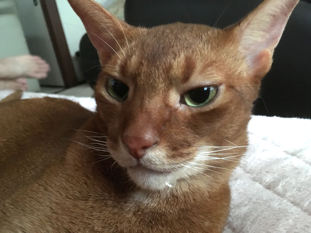 そして、アビのすけがいつもの様に絡んで来たので、アビのすけをいっぱい撫で撫でしてあげて、アビのすけも超・気持ち良さそうにいていたのですが、分るでしょうか、アビのすけの口元にはよだれが…。