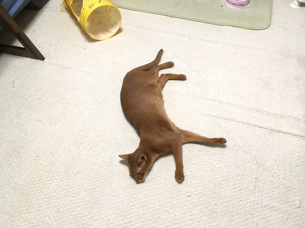 私が2階から退散しようとしたら、アビのすけも追い掛けて来て、今度はこっちでゴロン。