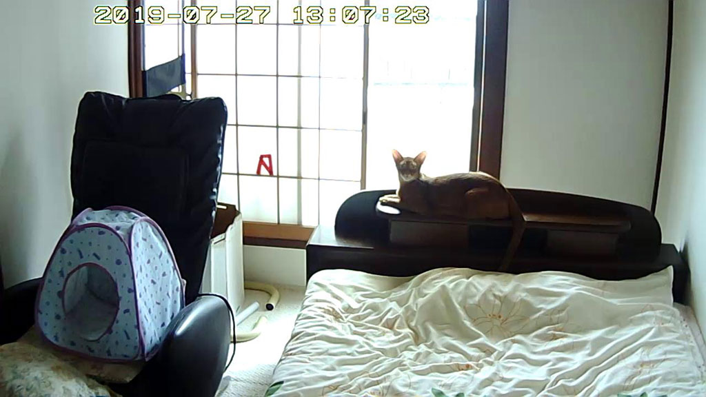 これは、3日前の7/26(金)の朝の事でしたが、2階でアビのすけが騒いでいる音が聞こえて来たので見てみると、虫でも見つけたのか、アビのすけが大騒ぎしてた。