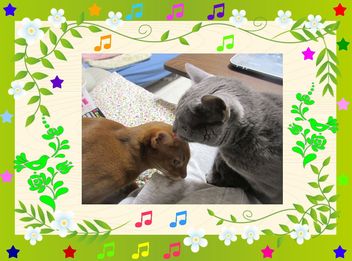 恒例の「なのはなさん」から頂いた我が家の猫たちの写真。 コメントを残す 今日は、恒例となった「なのはなさん」から頂いた我が家の猫たちの写真です…、「なのはなさん」いつも有難うございます。 これは、前の前の7/21(日)に頂いた写真…、ロシ子とアビのすけが揃って写真に収まってくれました。 やんちゃな顔のアビのすけ君。 そしてこれは、3日前の7/28(日)に頂いた写真…、ロシ子がアビのすけの頭を舐め舐めしている貴重な写真。 そして一見、おとなしくしているアビのすけ君ですが、超・腕白坊主のアビのすけ君です。